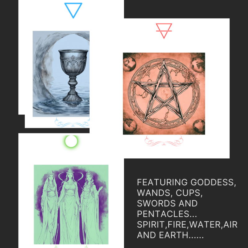 The Triple Goddess is being utilized to represent the major arcana of Tarot. Above each colored Triple Goddess, is a correlating circle symbol to represent spirit.: