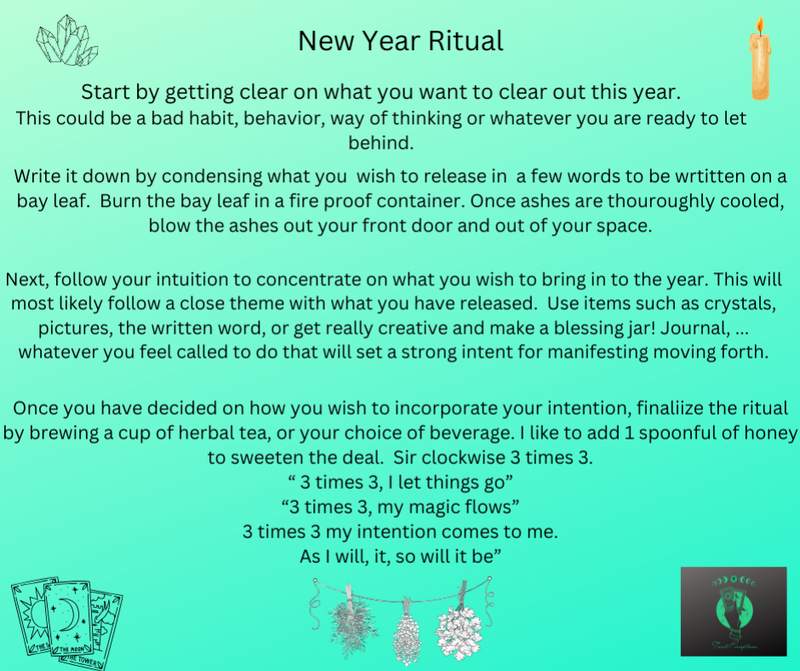 Remember, this is your baby!! Do what feels right to you!! You could do a craft project such as as a blessing ball or jar to focus on in the coming year that has items that correlate to your intent. If you like working with crystals, you may want to place sun stone in an area that you see often to remind you of the positivity of sunshine, happiness and gratitude. Or maybe you like to journal. A picture of a goal. anything that makes you focus on what it is you wish to cultivate this coming year.